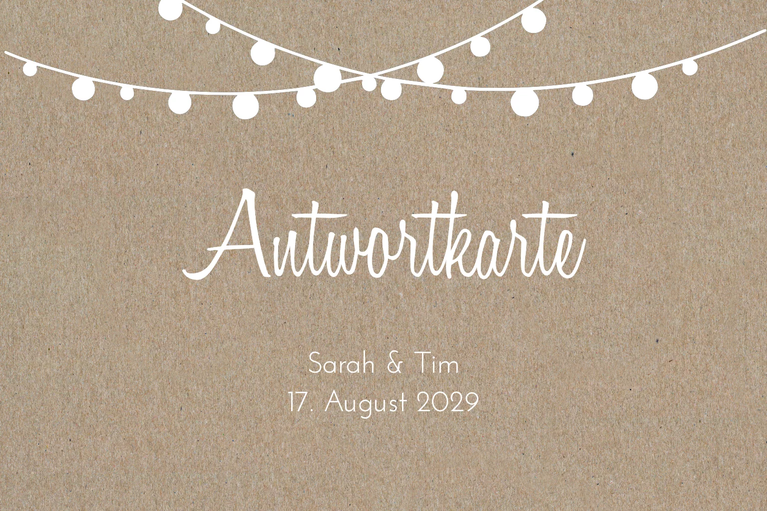Schlichte Antwortkarte zur Hochzeit aus Kraftpapier mit Lichterkette