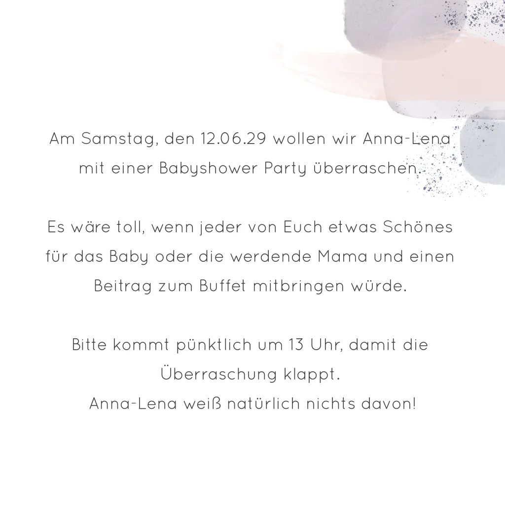 Baby Shower Einladung mit Aquarell-Hintergrund in Lila und Rosa