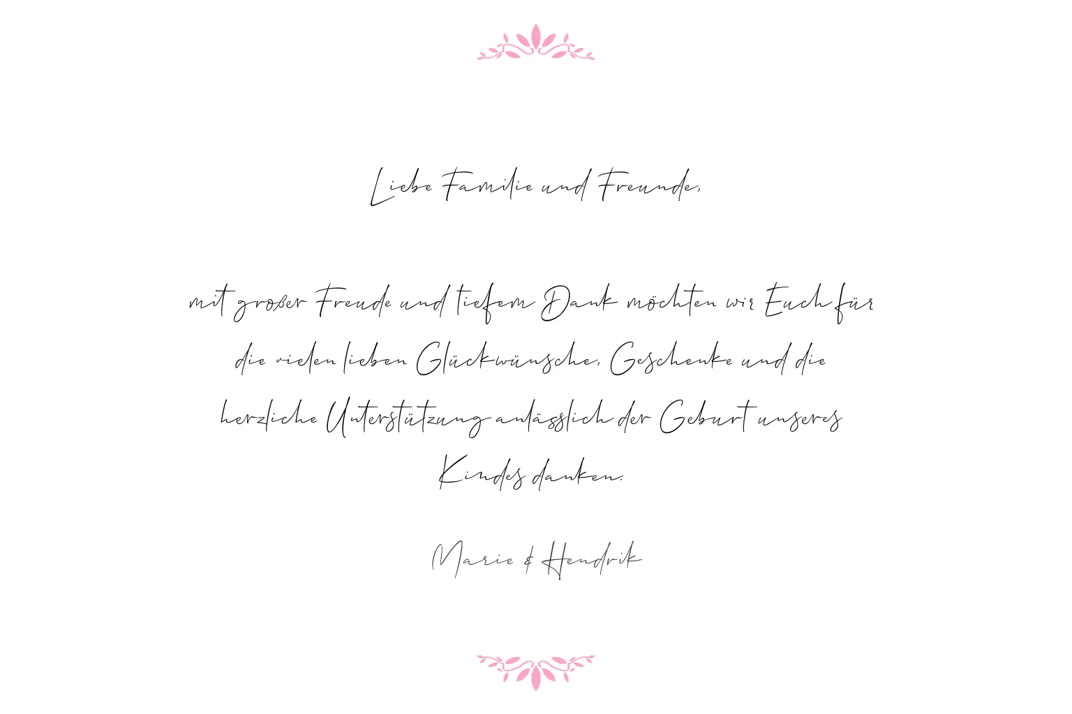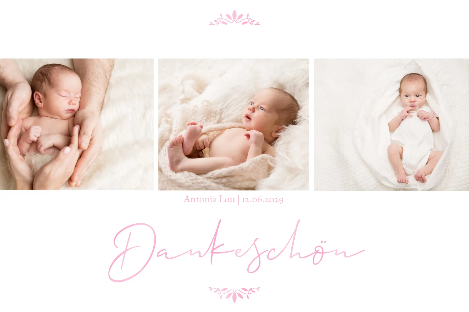 Baby Danksagung mit Fotoreihe als Klappkarte in Pink