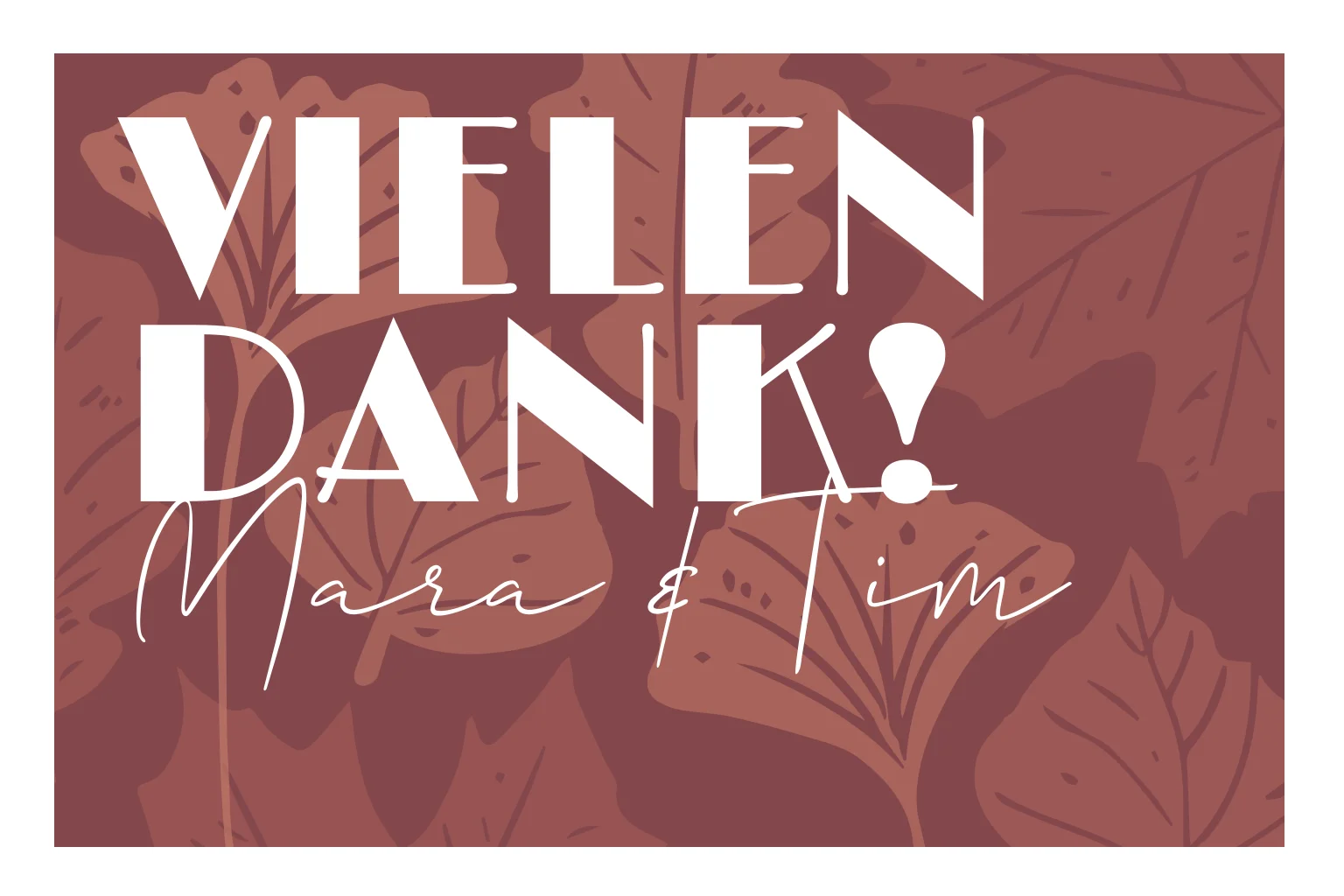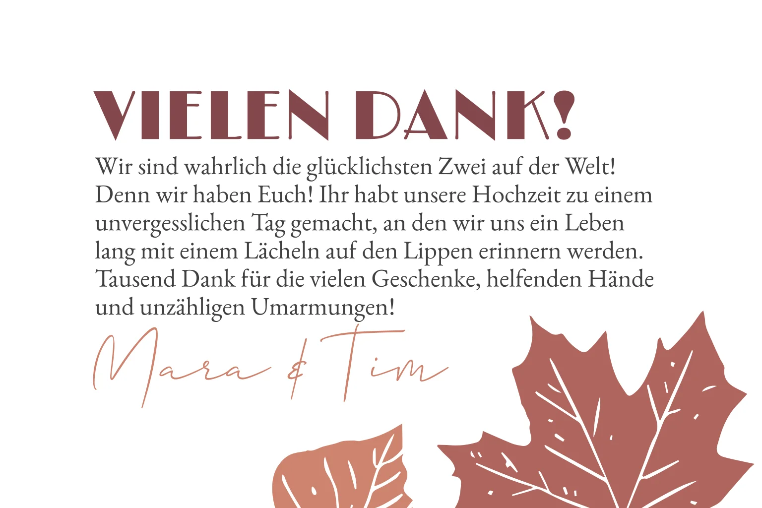 Danksagungskarte als Klappkarte im herbstlichen Look mit weißem Rahmen und Blättern in warmen Rot- und Brauntönen.