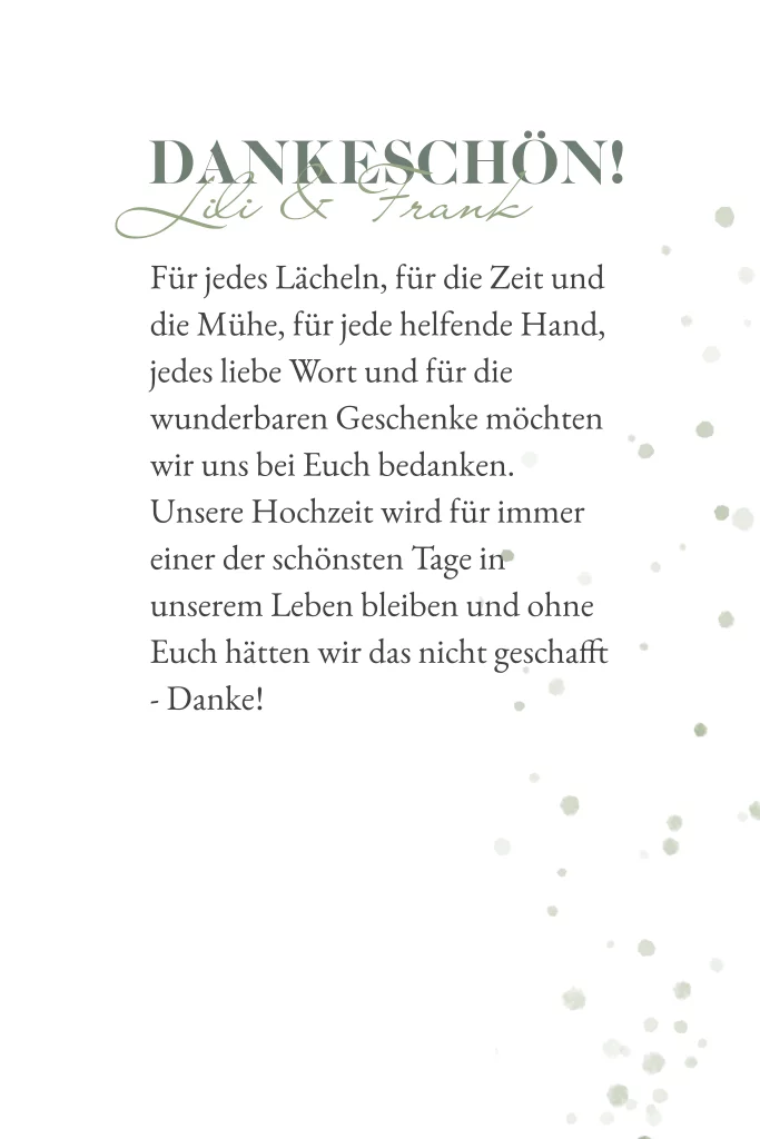Boho Danksagungskarte zur Hochzeit in weiß mit grüner Sukkulente und Punkten. Die Klappkarte bietet ausreichend Platz für Eure Fotos.