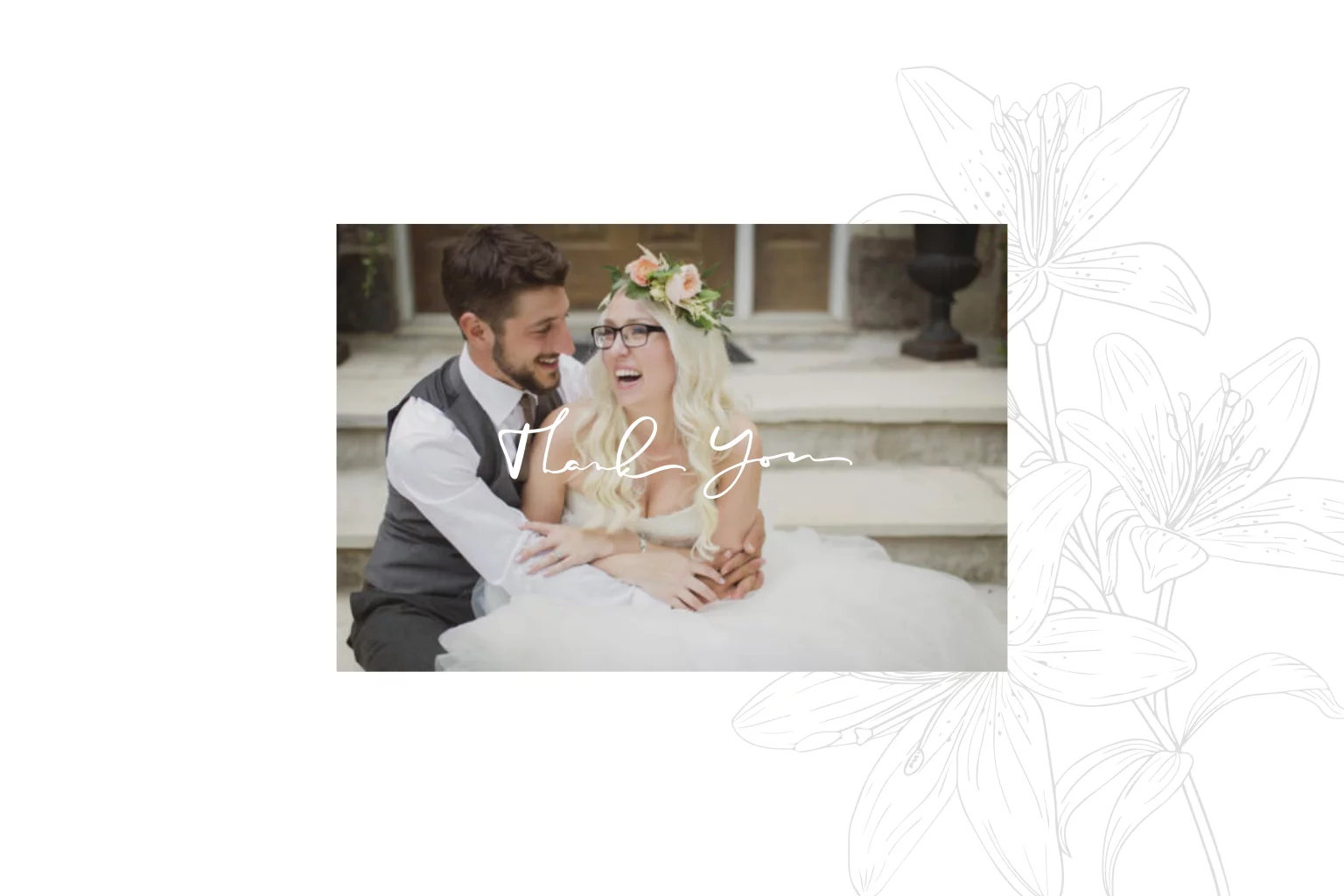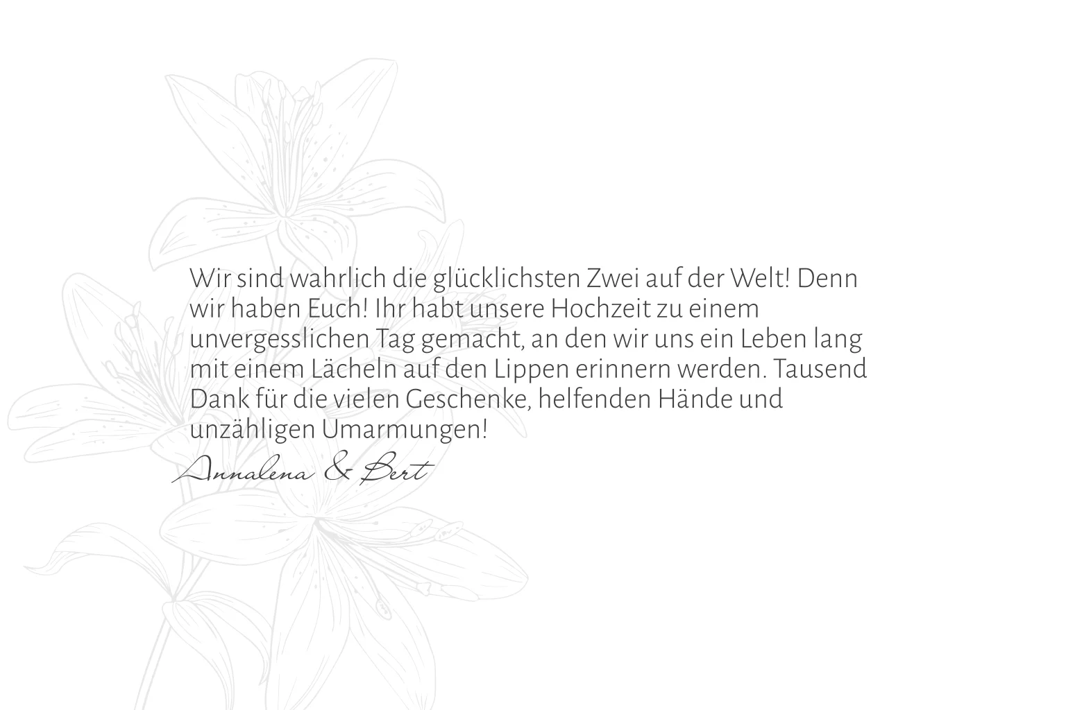 Weiße Dankeskarte zur Hochzeit mit Line Art Blumen und Handlettering