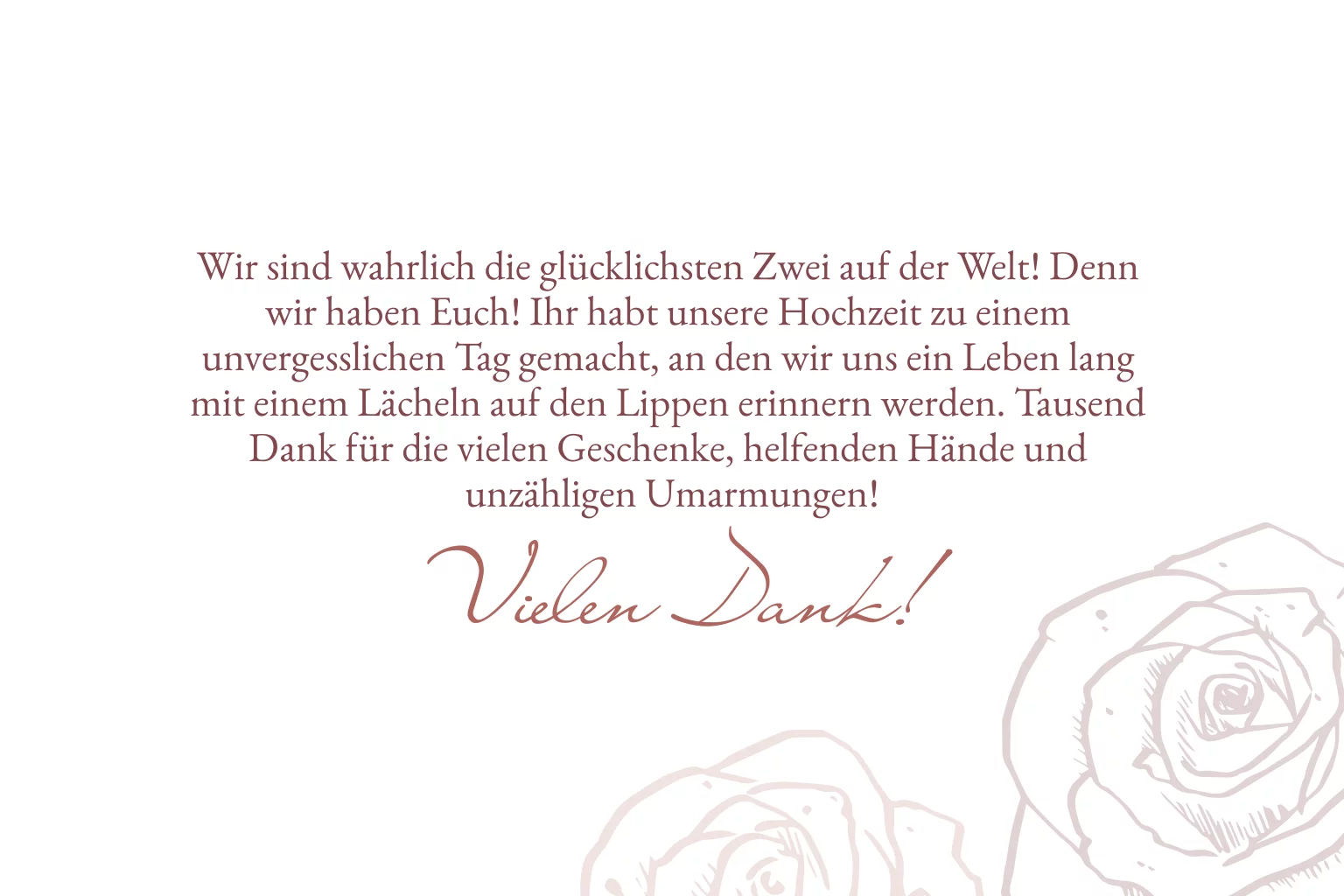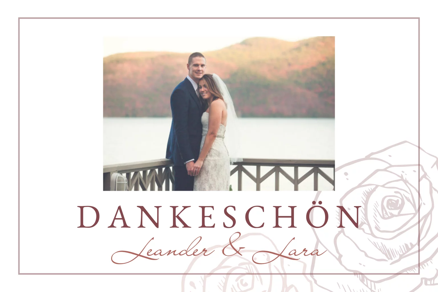 Danksagungskarte zur Hochzeit im Postkartenklappformat mit zarten Rosen und Eurem Foto.