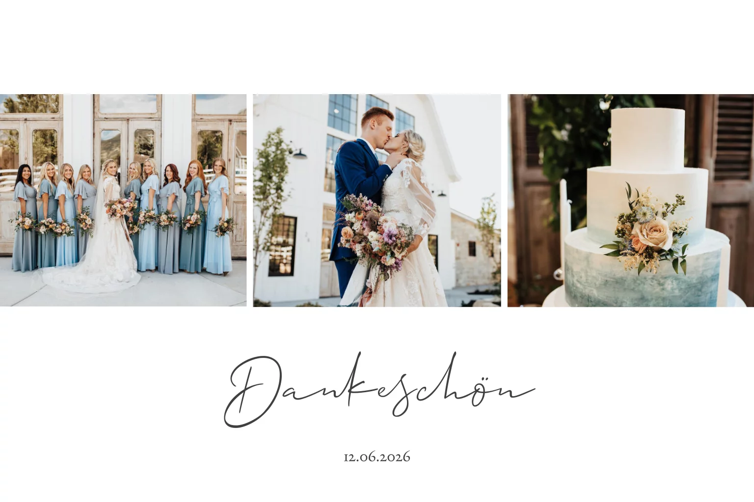 Dankeskarte zur Hochzeit als Klappkarte im klassisch - eleganten Stil mit persönlicher Fotocollage. Die Karte im Postkartenformat ist folierbar.