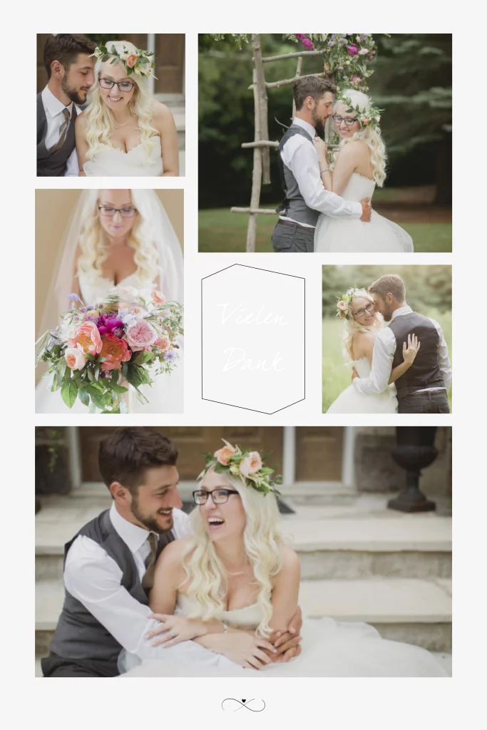 Klassische Hochzeitscollage als Danksagung zur Hochzeit