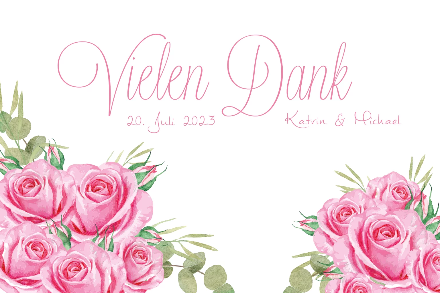 Weiße Dankeskarte zur Hochzeit mit Rosen in pink und rosa