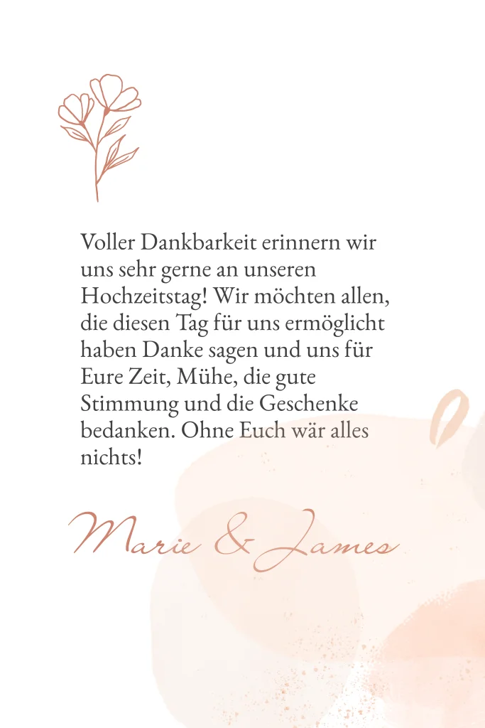 Schlichte weiße Dankeskarte zur Hochzeit mit Aquarell in Rosa und Kupfer