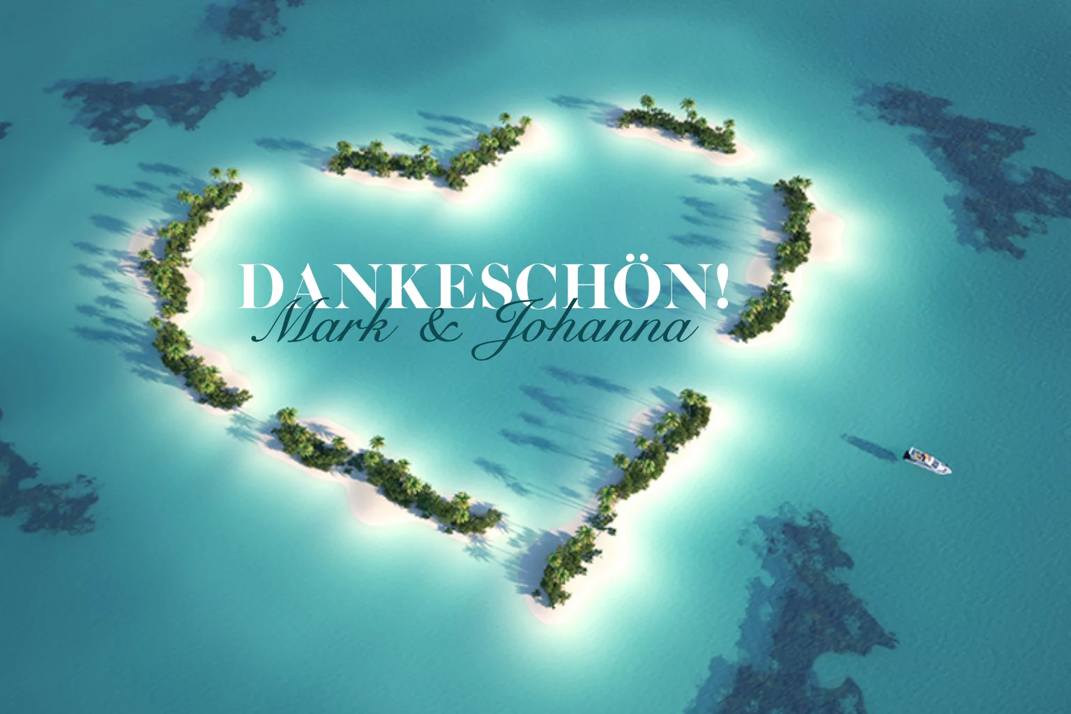 Danksagung mit Motiv: Herzinsel im türkisfarbenen Meer