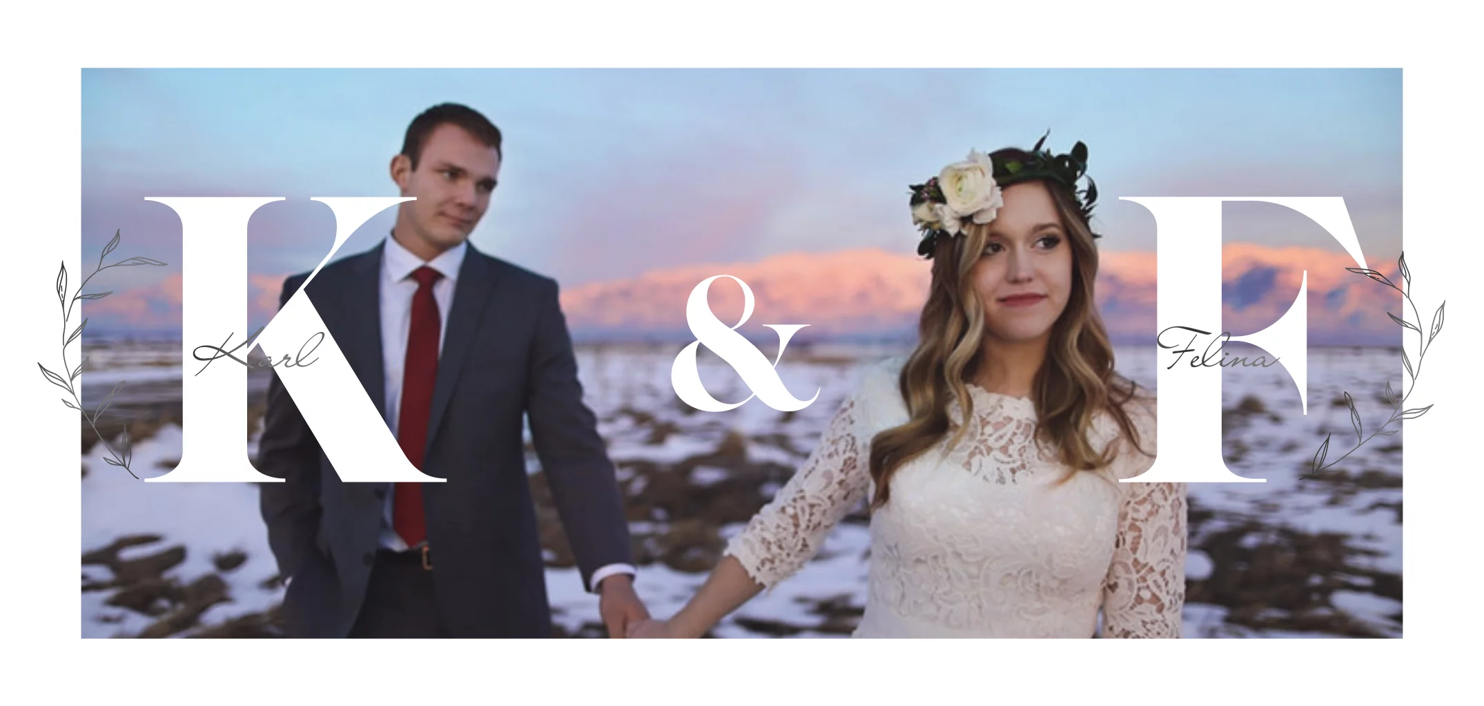Weiße Danksagungskarte zur Hochzeit als Fotokarte. Die Karte im Panoramaformat mit weißen Initialen, zarten Zweigen, Schmetterling und Sprenkeln wird mit schwarzer Folie veredelt.