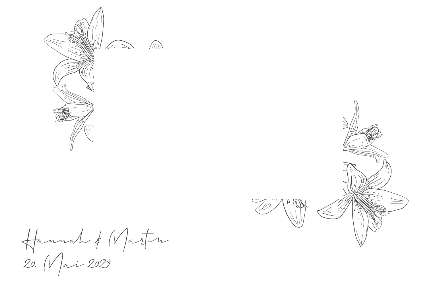 Elegante veredelte Dankeskarte zur Hochzeit mit schwarzen Blumen