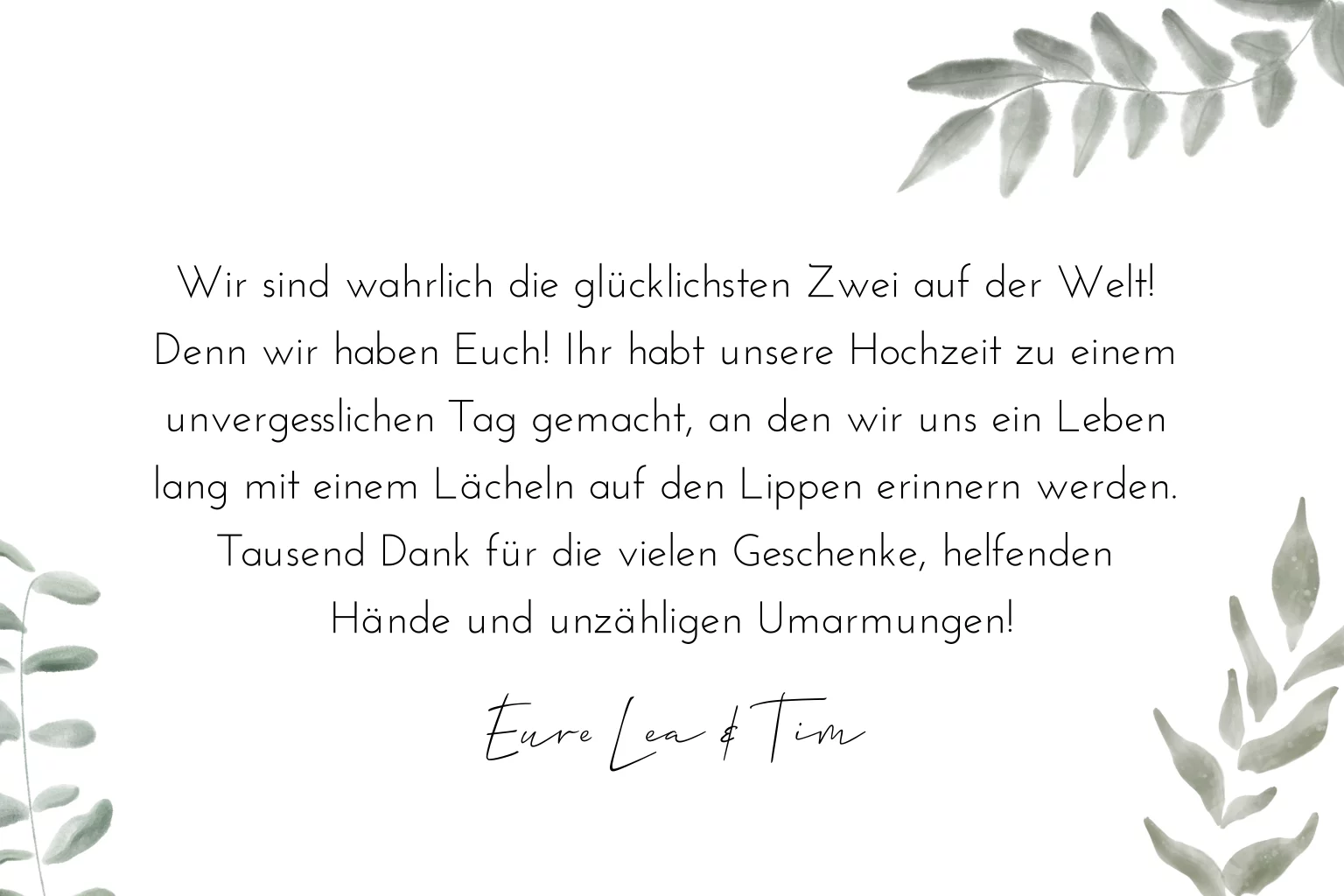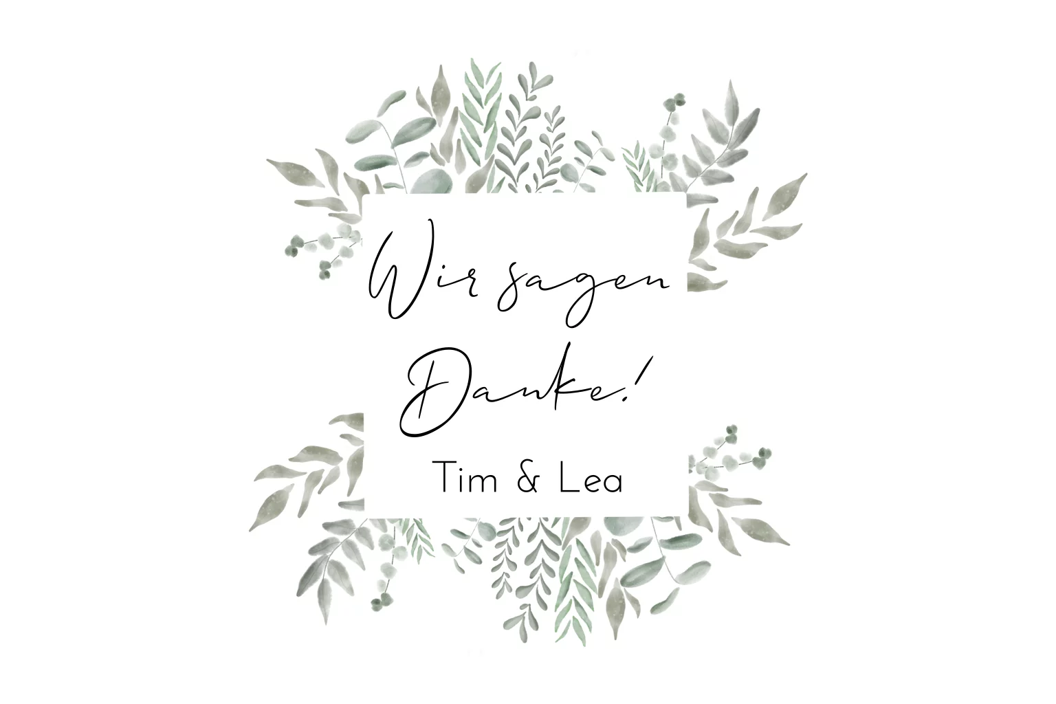 Dankeskarte zur Hochzeit mit zartem Greenery Aquarell Rahmen in grün