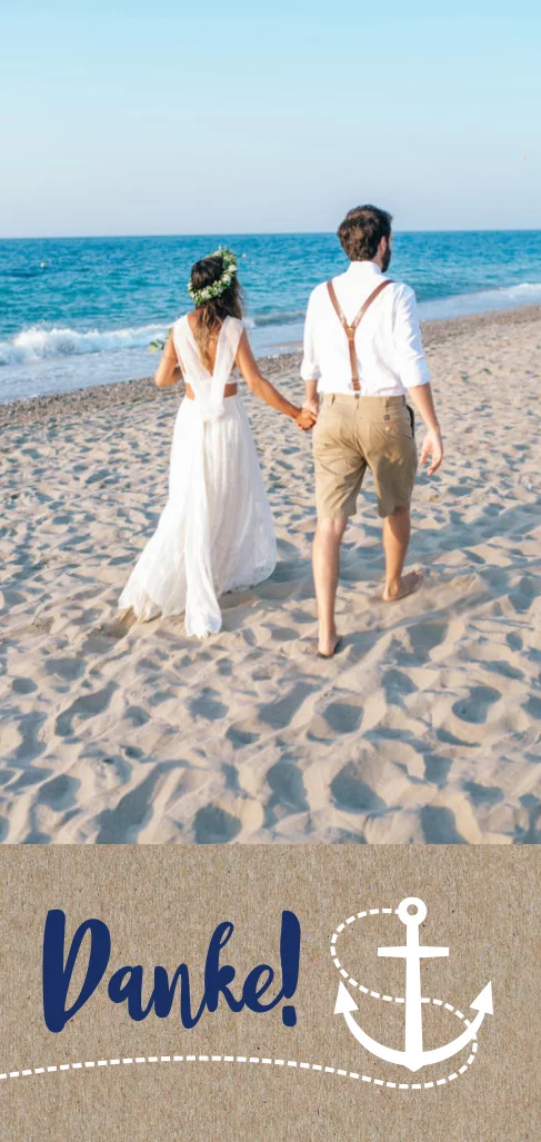 Maritime Dankeskarte zur Hochzeit im Kraftpapierlook mit Foto und Anker