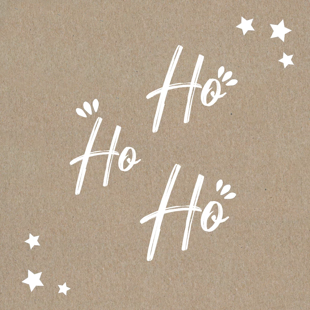 Schlichte quadratische "HoHoHo" Danksagungskarte zur Hochzeit aus Kraftpapier mit weißen Sternen.