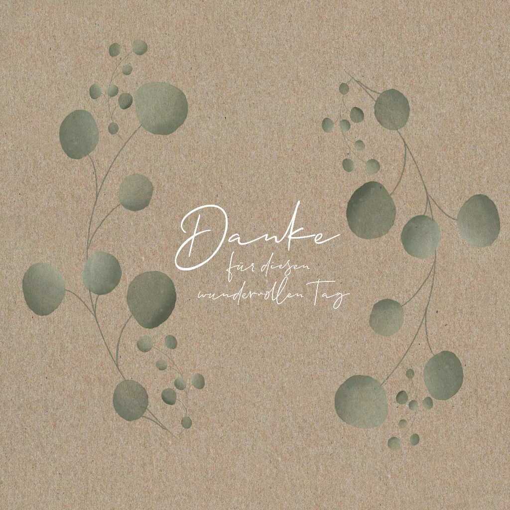 Danksagungskarte aus Kraftpapier mit zarten Eukalyptuszweigen