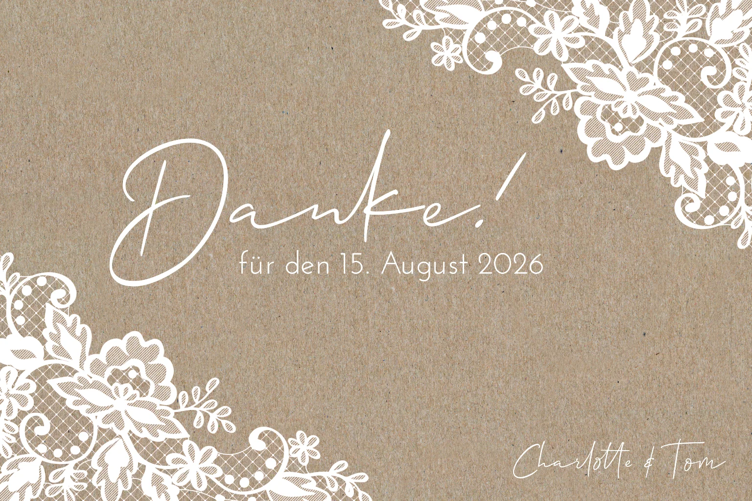 Danksagungskarte aus Kraftpapier mit weißer Spitze