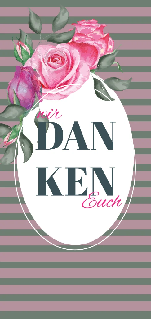 Elegante gestreifte Dankeskarte zur Hochzeit mit Rosen