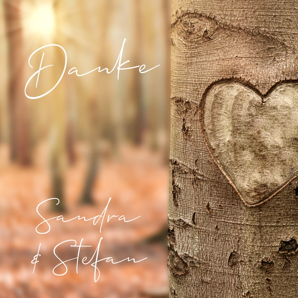 Herbstliche Dankeskarte zur Hochzeit mit Fotomotiv: Herz im Baumstamm