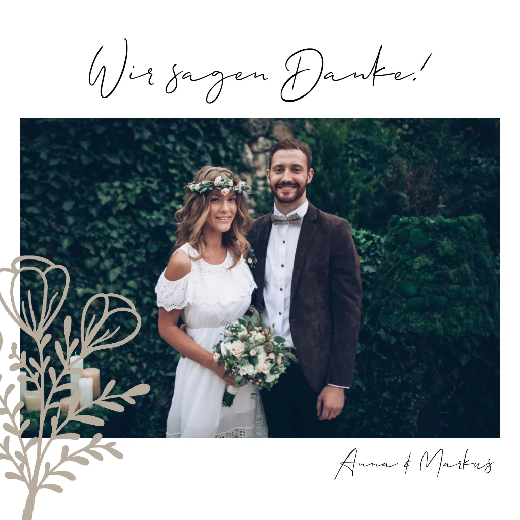 Die simple minimalistische Danksagungskarte erhält durch den floralen Akzent der Blume ihren besonderen Charme.