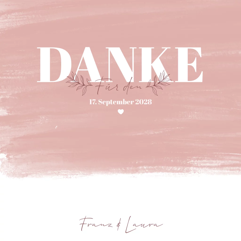 Danksagungskarte in rosa mit Pinselstrichen und dezenten floralen Elementen