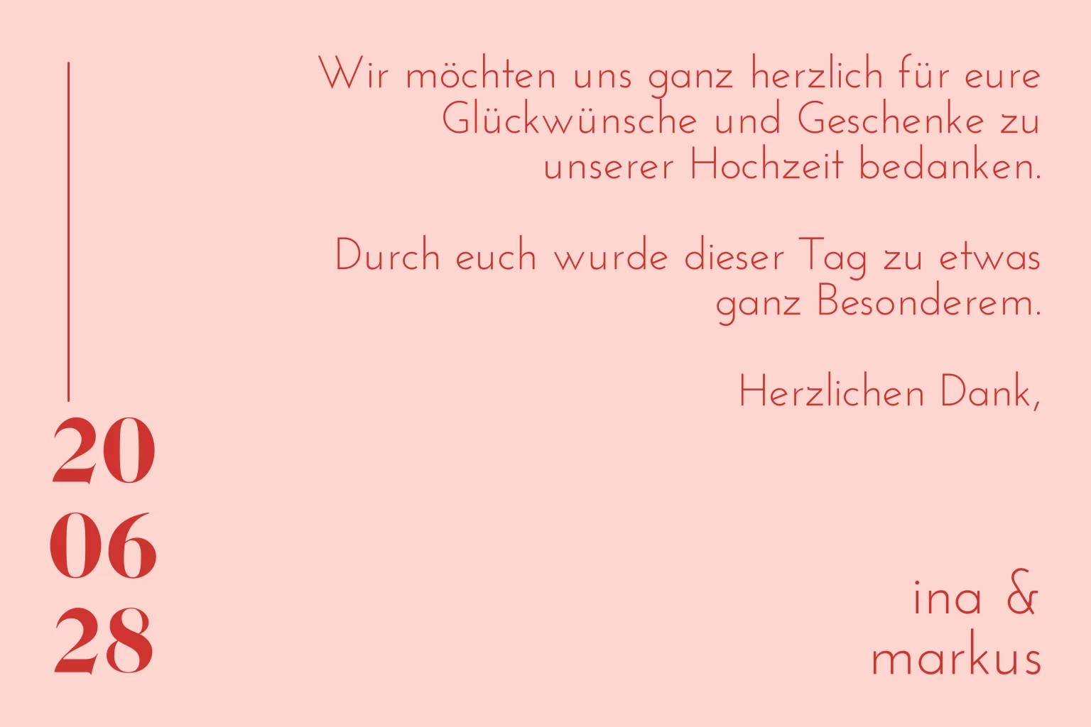 Rosa-Rote Dankeskarte mit dezenter Typografie