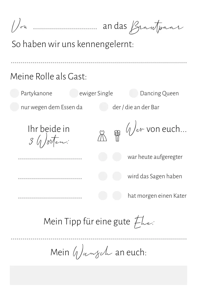 Schlichte Gästebuchkarte als Vorlage zum Selbstgestalten