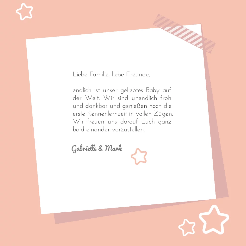 Geburtskarte mit Fotobefestigung, Sterne und Herzen in Rosa