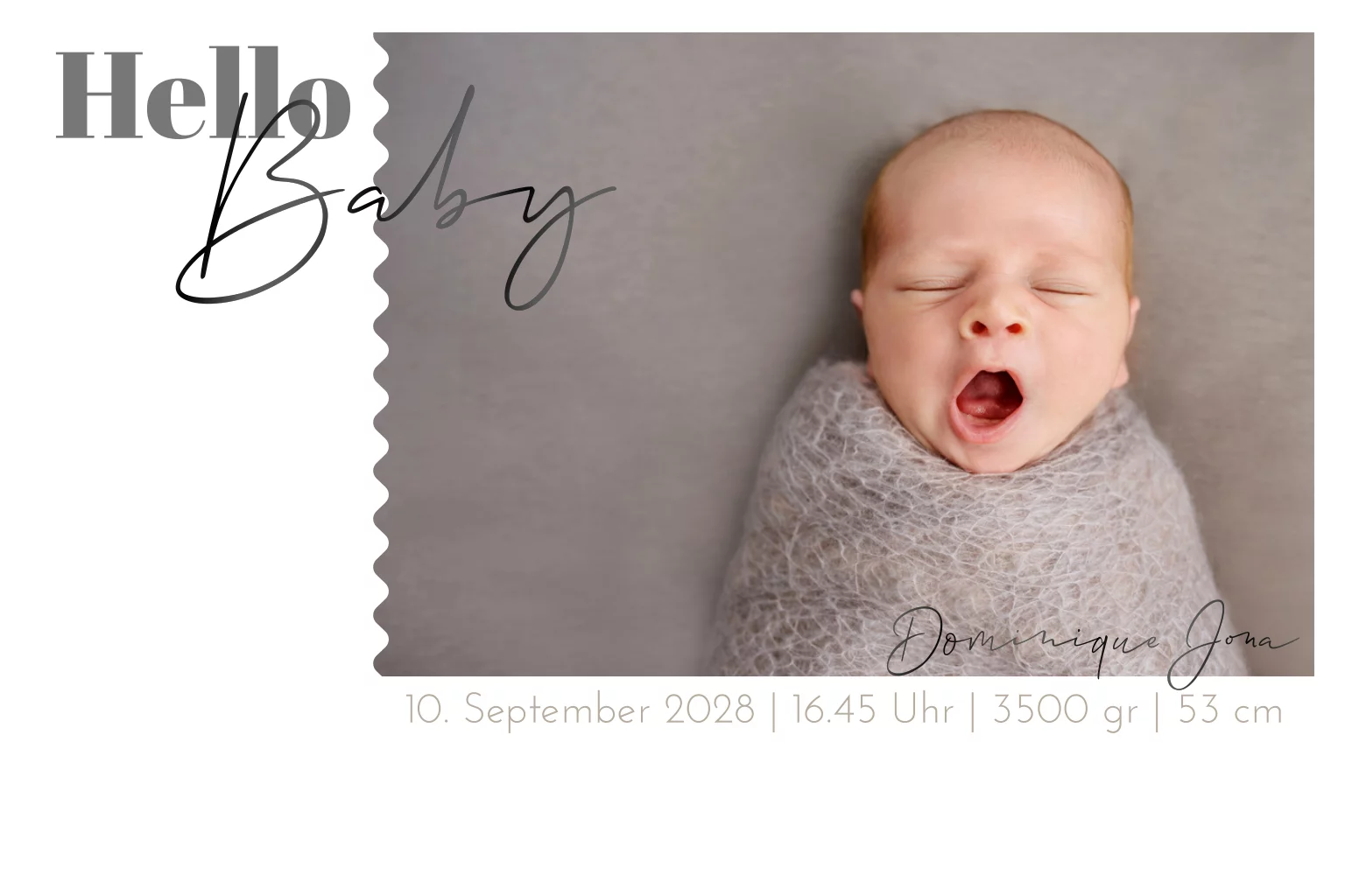 Geburtskarte genderneutral mit Foto "Hello Baby"