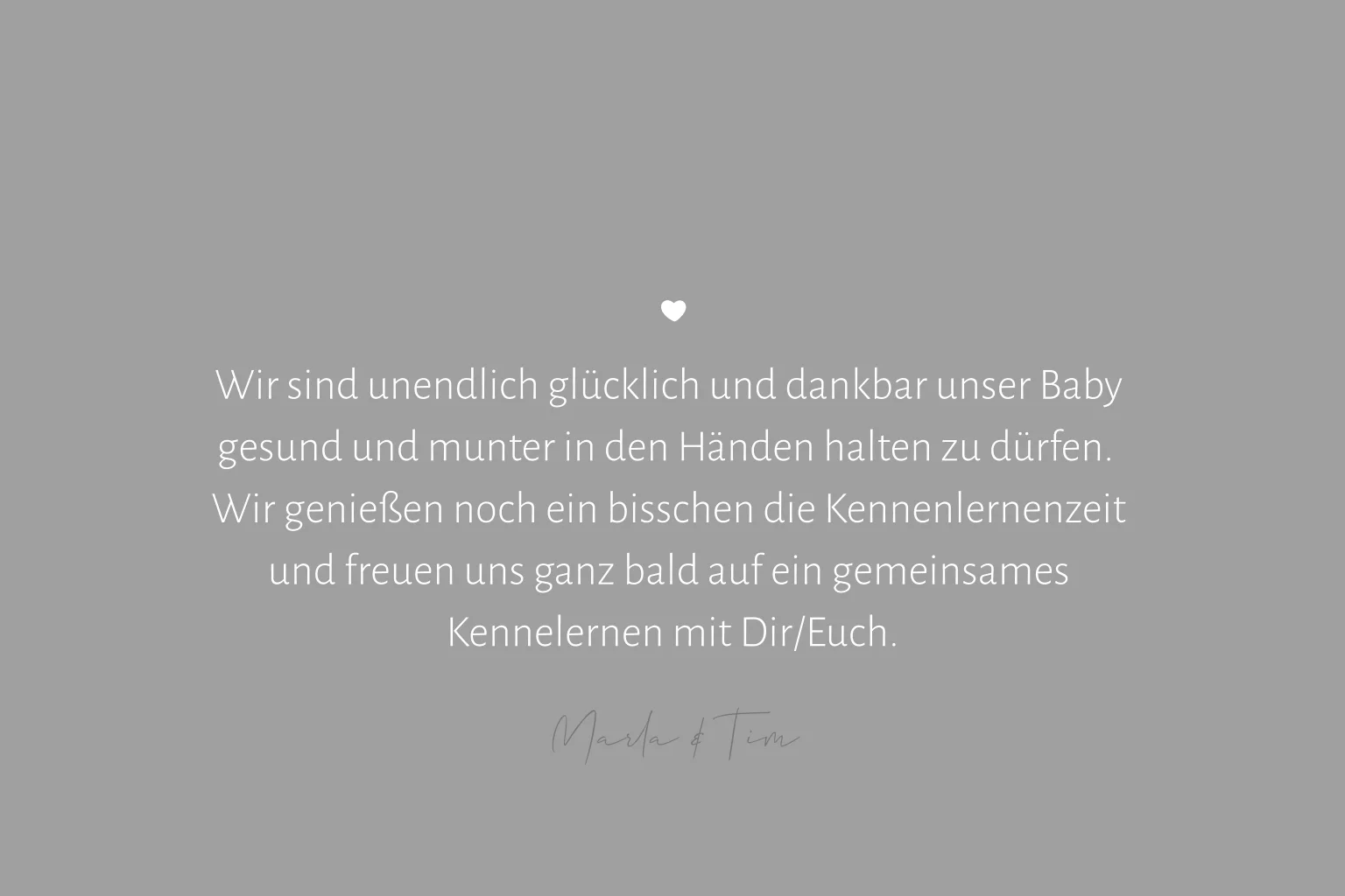 Weiße Geburtskarte im Postkartenformat zum Klappen. Klassisches und geschlechtsneutrales Design.