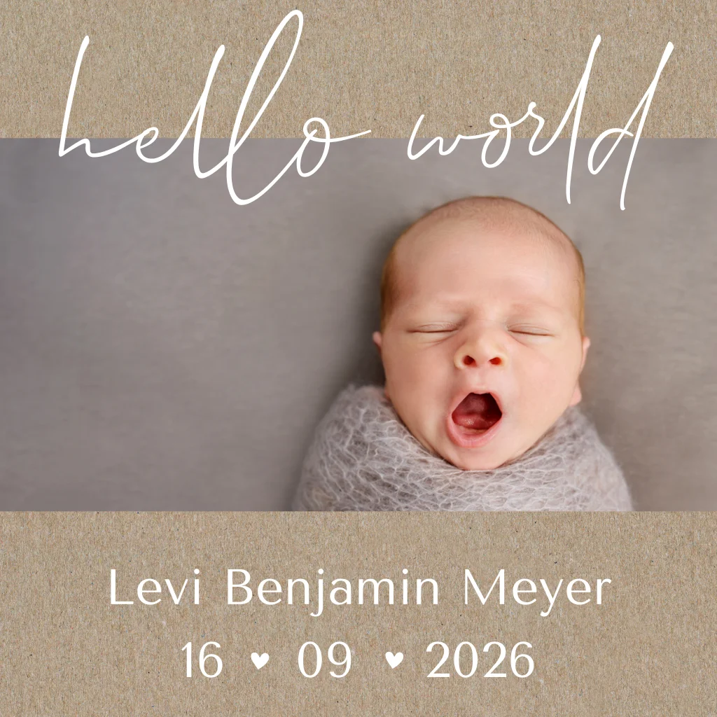 Unsere quadratische Klappkarte im rustikalen Kraftpapierlook ist die perfekte Möglichkeit, die Ankunft Eures Babys auf stilvolle Weise zu verkünden.