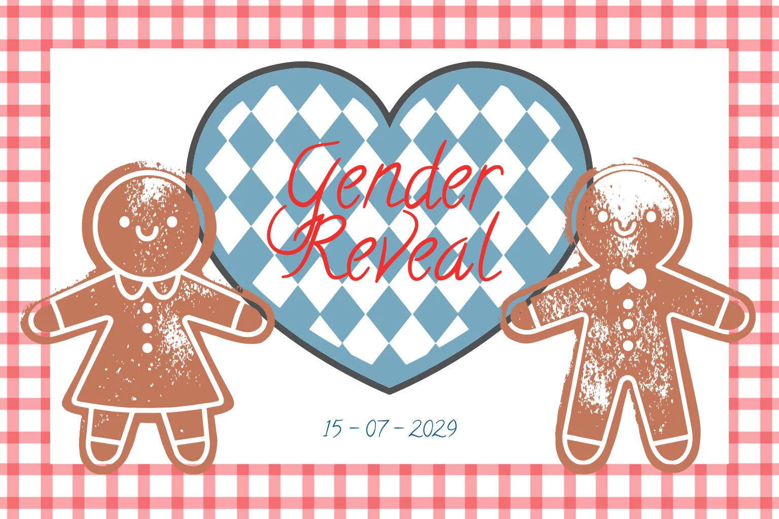 Bayerische Gender Reveal Einladungskarte mit Lebkuchenfiguren