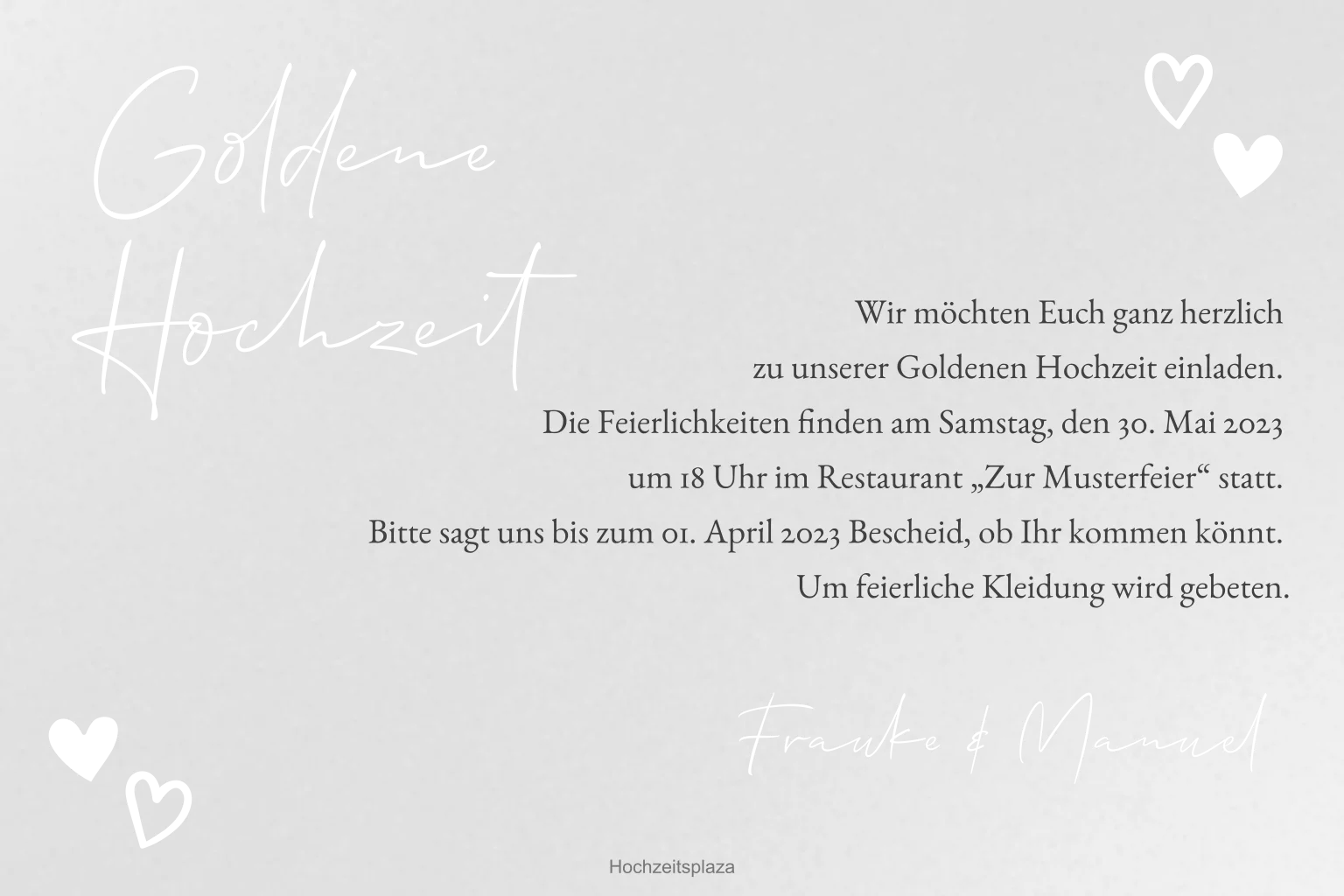 Einladung zur Goldhochzeit aus Transparentpapier mit Gold-Herzen