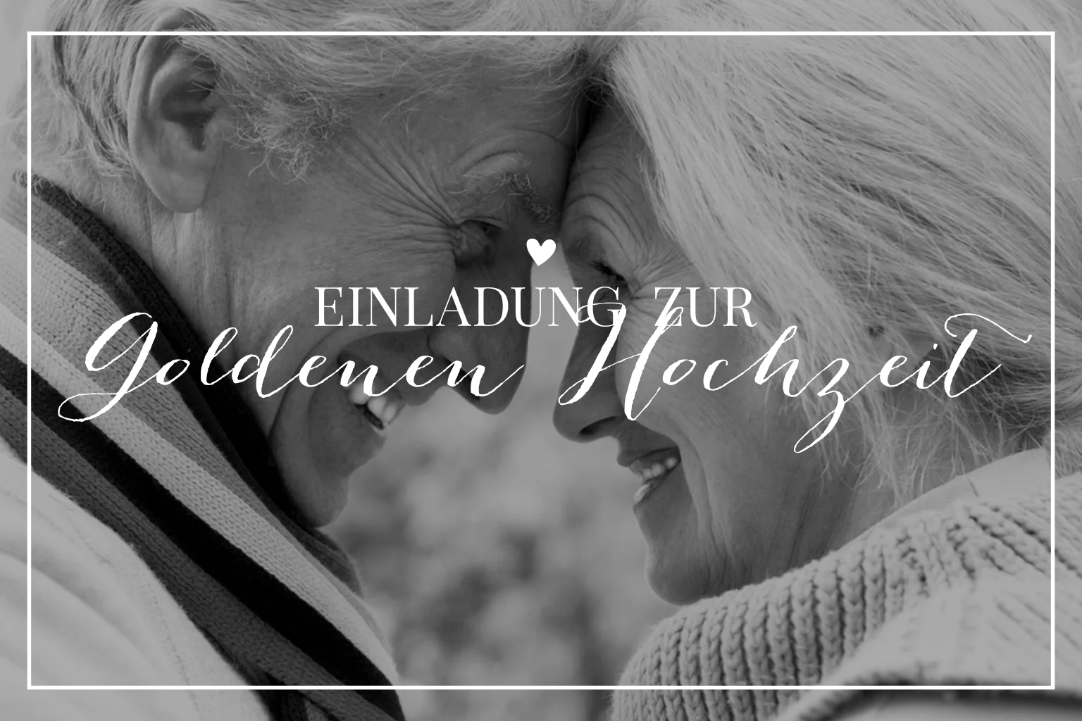 Fotoeinladungskarte zur Goldenen Hochzeit mit Goldrahmen und Herz