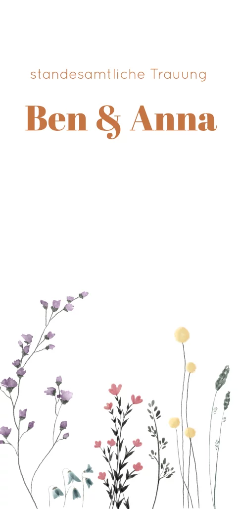 Einladungskarte zur standesamtlichen Trauung mit bunter Blumenwiese