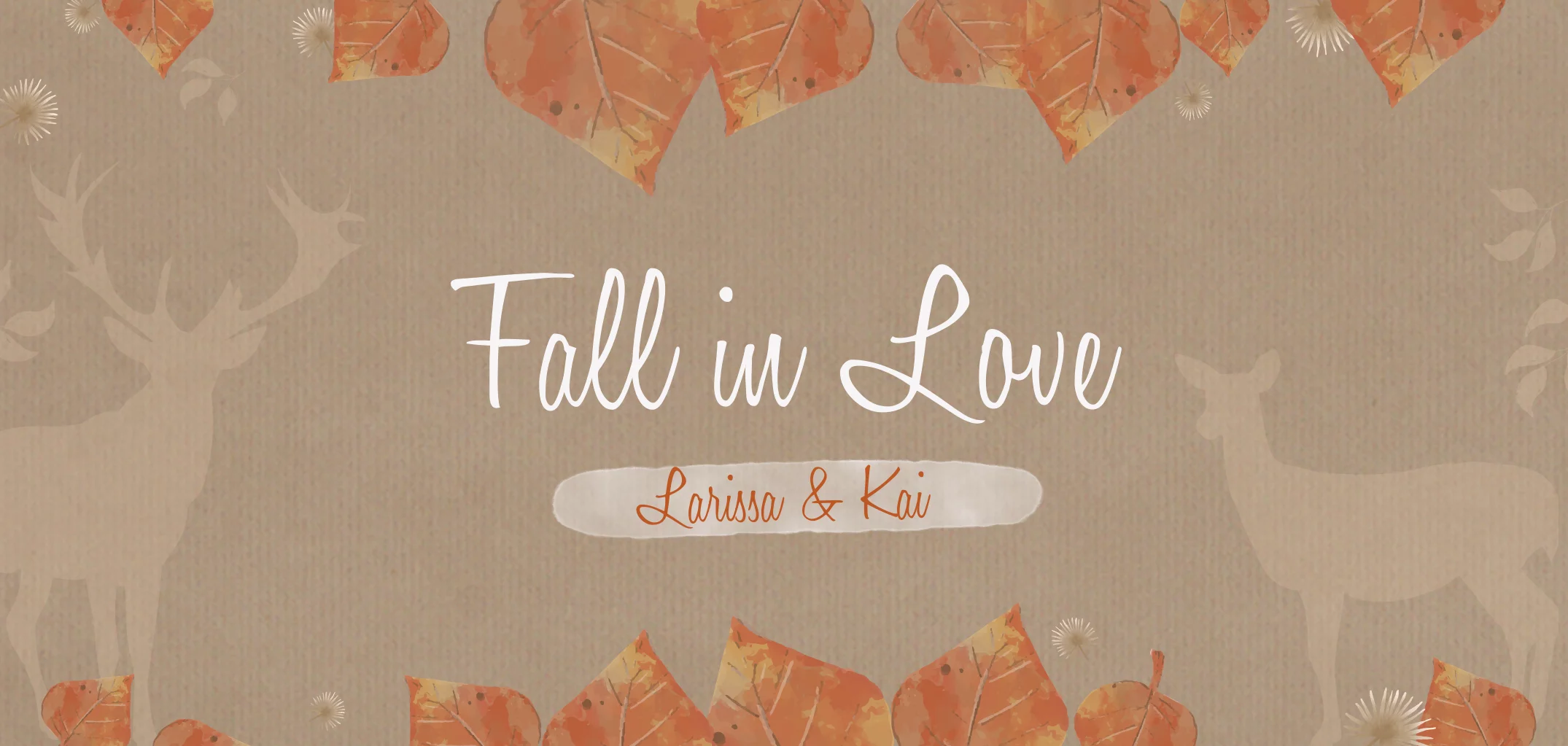 Klappkarte im Panoramaformat mit Herbst Thematik und Kraftpapier-Optik. Die "Fall in Love" Karte mit Blättern und Waldtieren in Braun - und Orangetönen ist perfekt für die rustikale Herbsthochzeit.