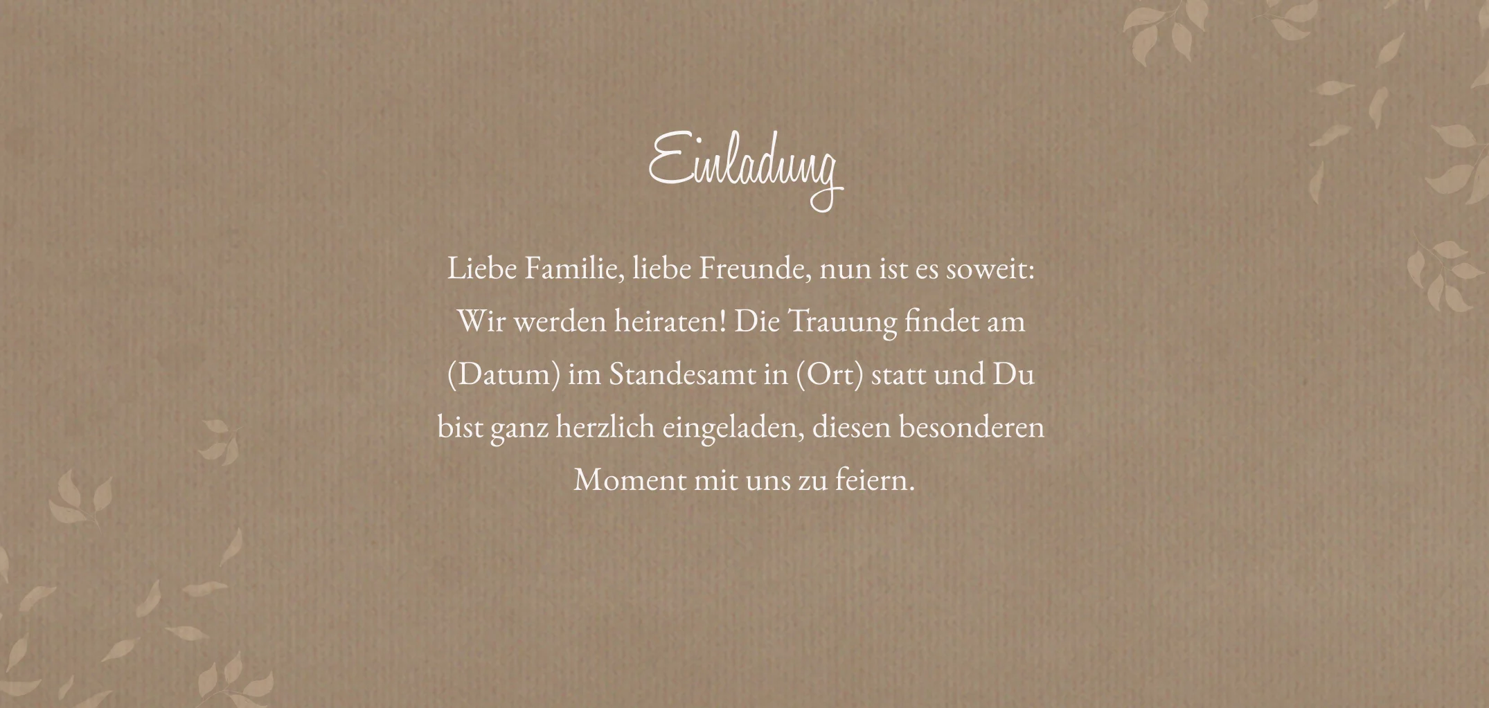 Einladung zur Hochzeit in Kraftpapier Optik mit Blätter und Waldtieren