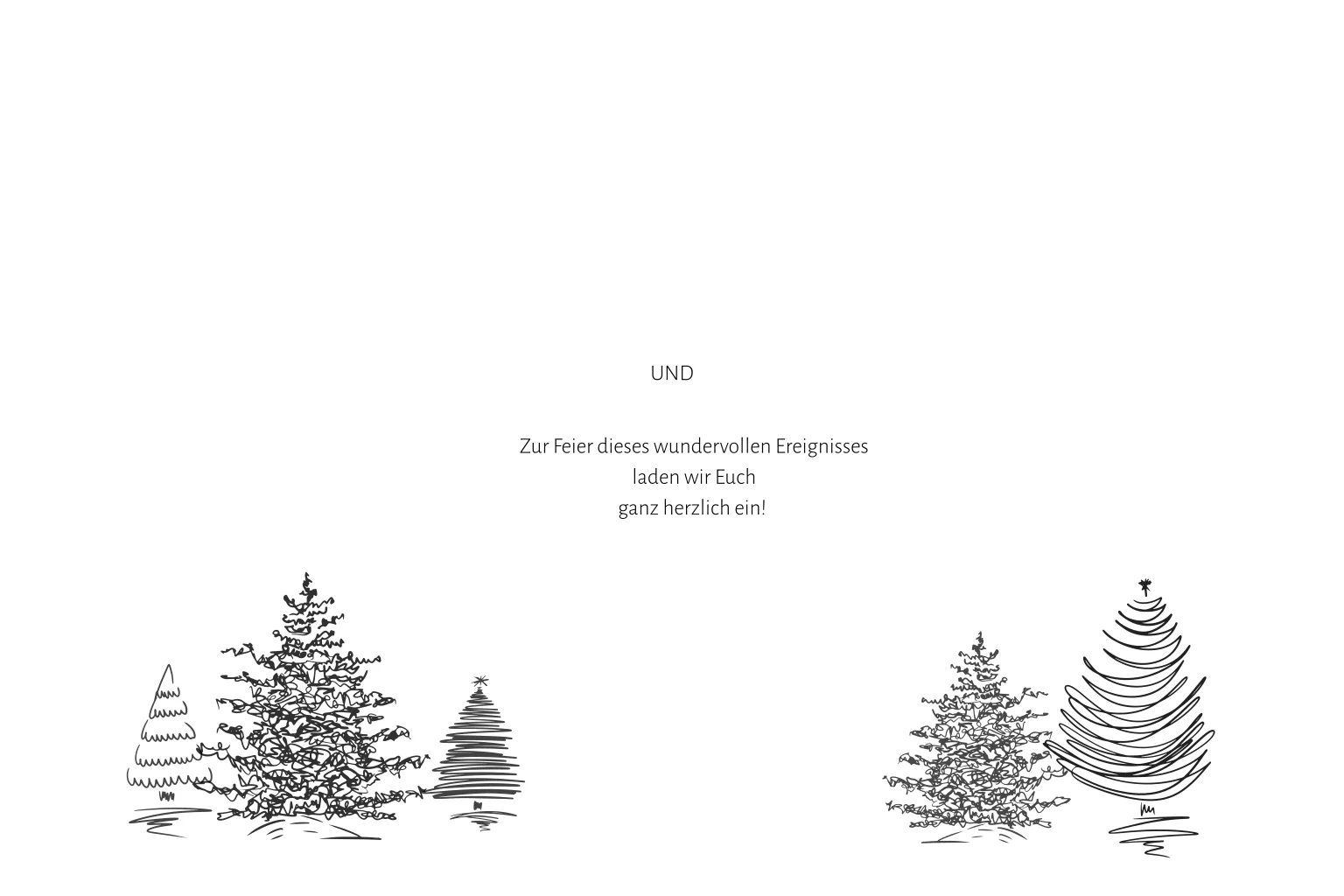 Schlichte weiße Einladung für das Standesamt mit Line Art Tannen