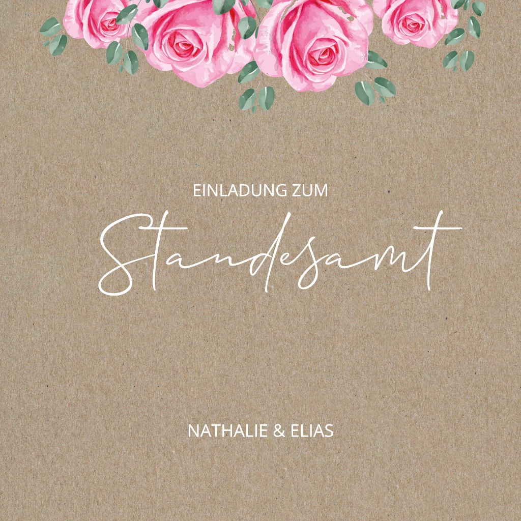 Einladung für die Trauung im Standesamt aus Kraftpapier mit rosa Rosen