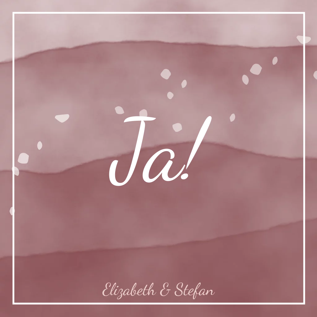 Schlichte Aquarell Einladungskarte in Weinrot mit Roségold Veredelung und fliegenden Blättern im quadratischen Format.
