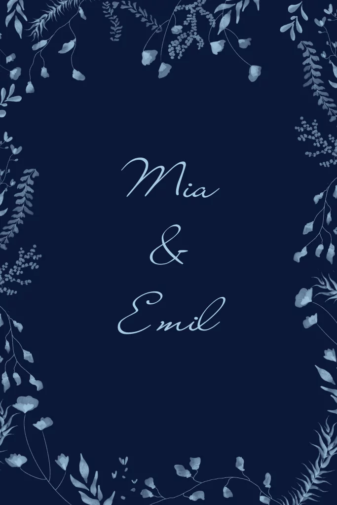 Dunkelblaue Einladungskarte mit abgesetzten Blumenrahmen