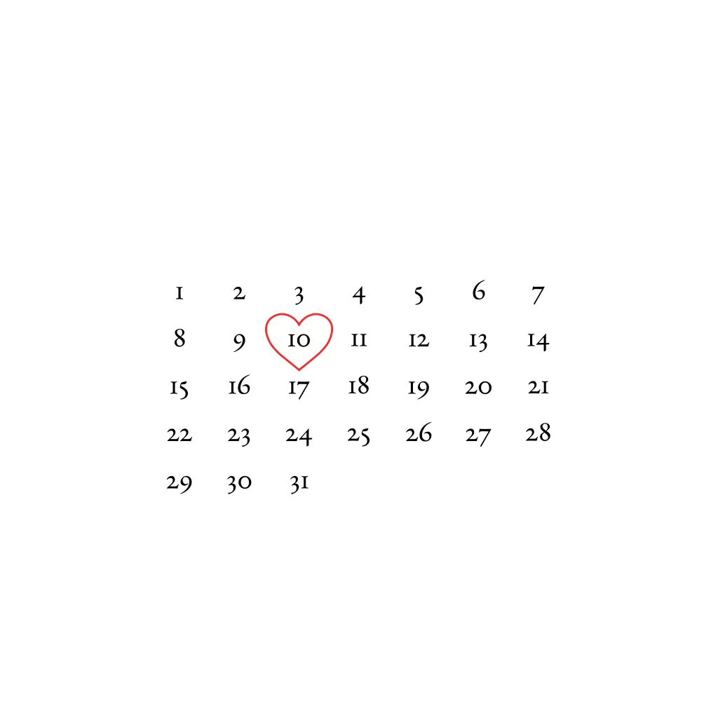 Weiße Einladung zur Hochzeit im quadratischen Format mit Kalenderblatt auf dem Ihr Euren großen Tag mit einem Herzen markieren könnt. Die feinen Lilien im Line Art Stil werden silberner Folie veredelt.