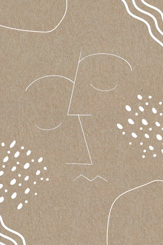 Einladung zur Hochzeit aus Kraftpapier mit abstrakten Formen und Line Art Paar in weiß.