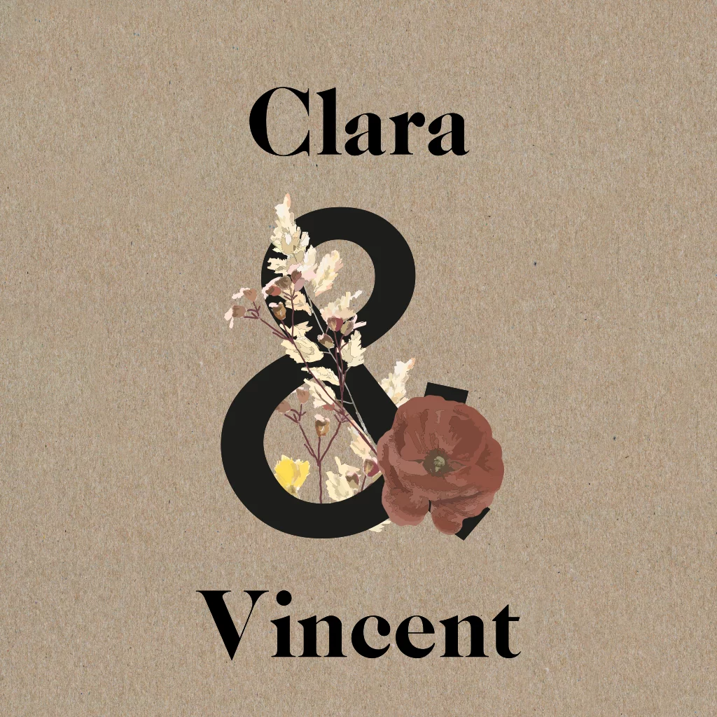 Florale Einladung zur Hochzeit aus Kraftpapier mit &-Zeichen