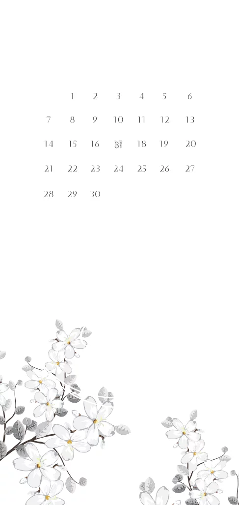 Weiße Hochzeitseinladung mit Kalender, Blüten, Kreisen und Goldfolie