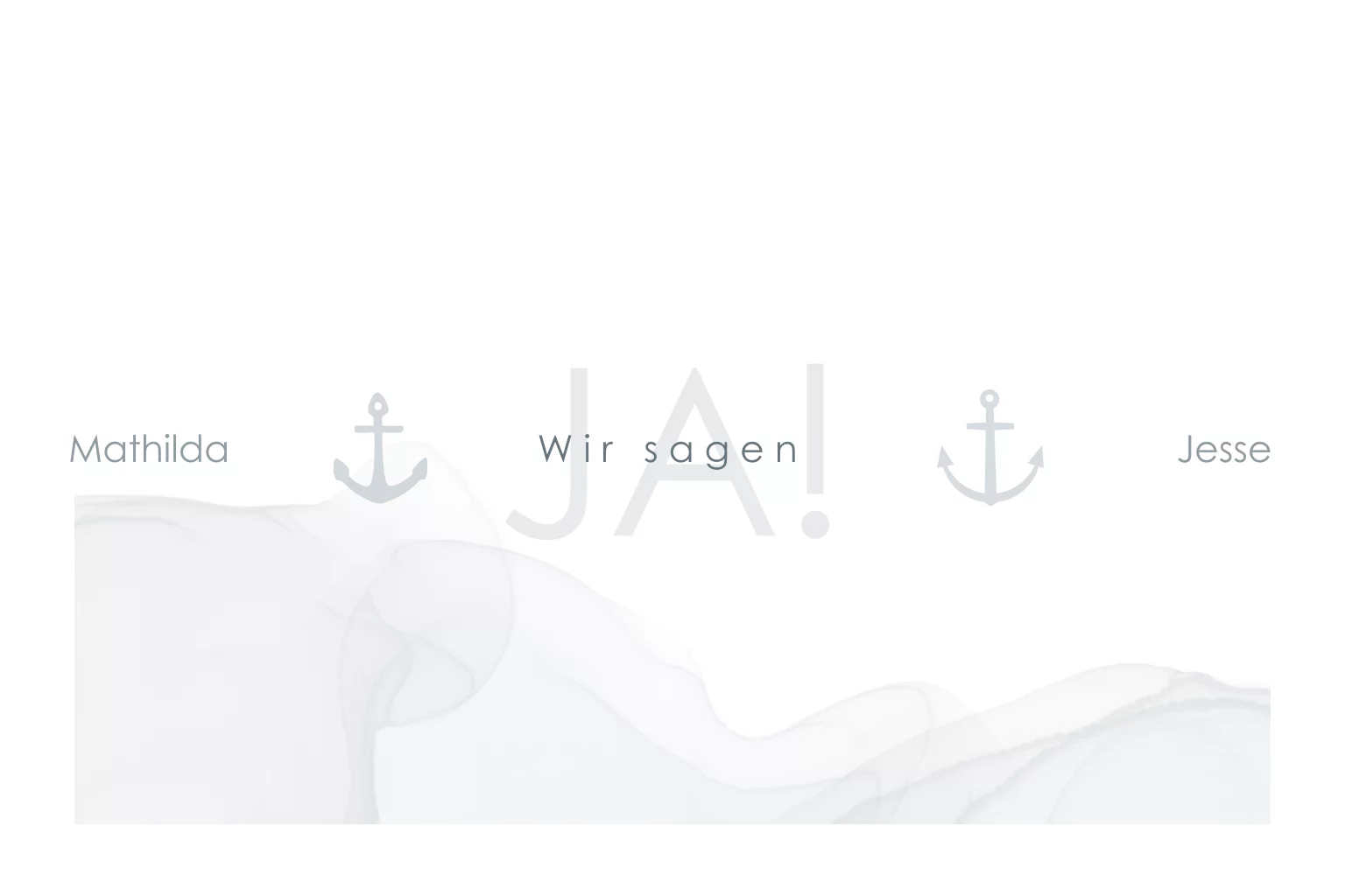 Schlichte Einladung für die Hochzeitsfeier mit Ankern. Die weiße Postkarte ist mit einem hellblauen Aquarell verziert. Auf der Rückseite der Karte ist Platz für Euer Verlobungsfoto.