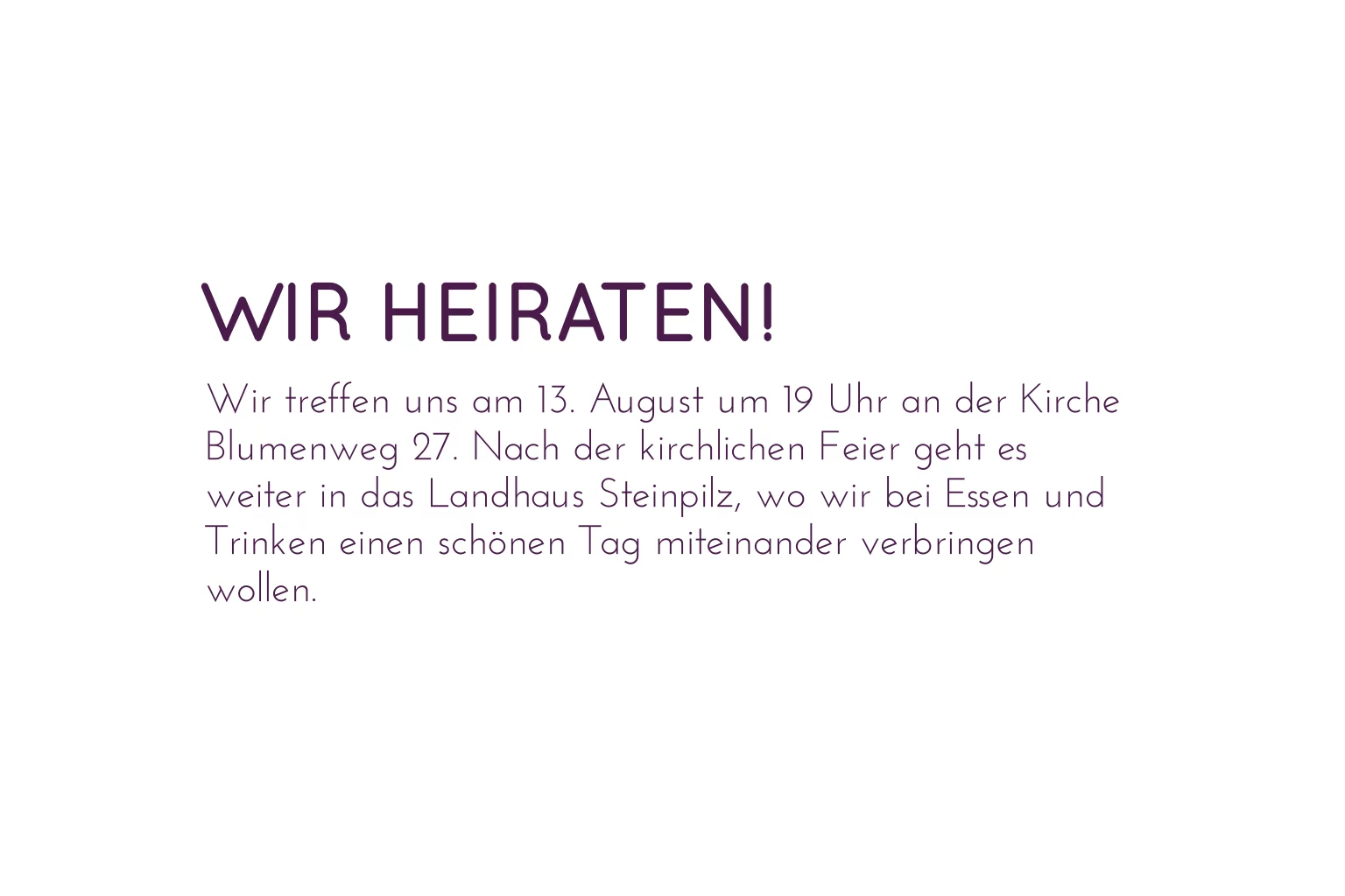 Moderne Hochzeitskarte in lila mit 2 Bräutigam Icons und Banner