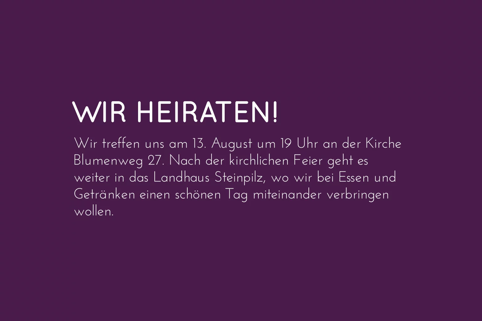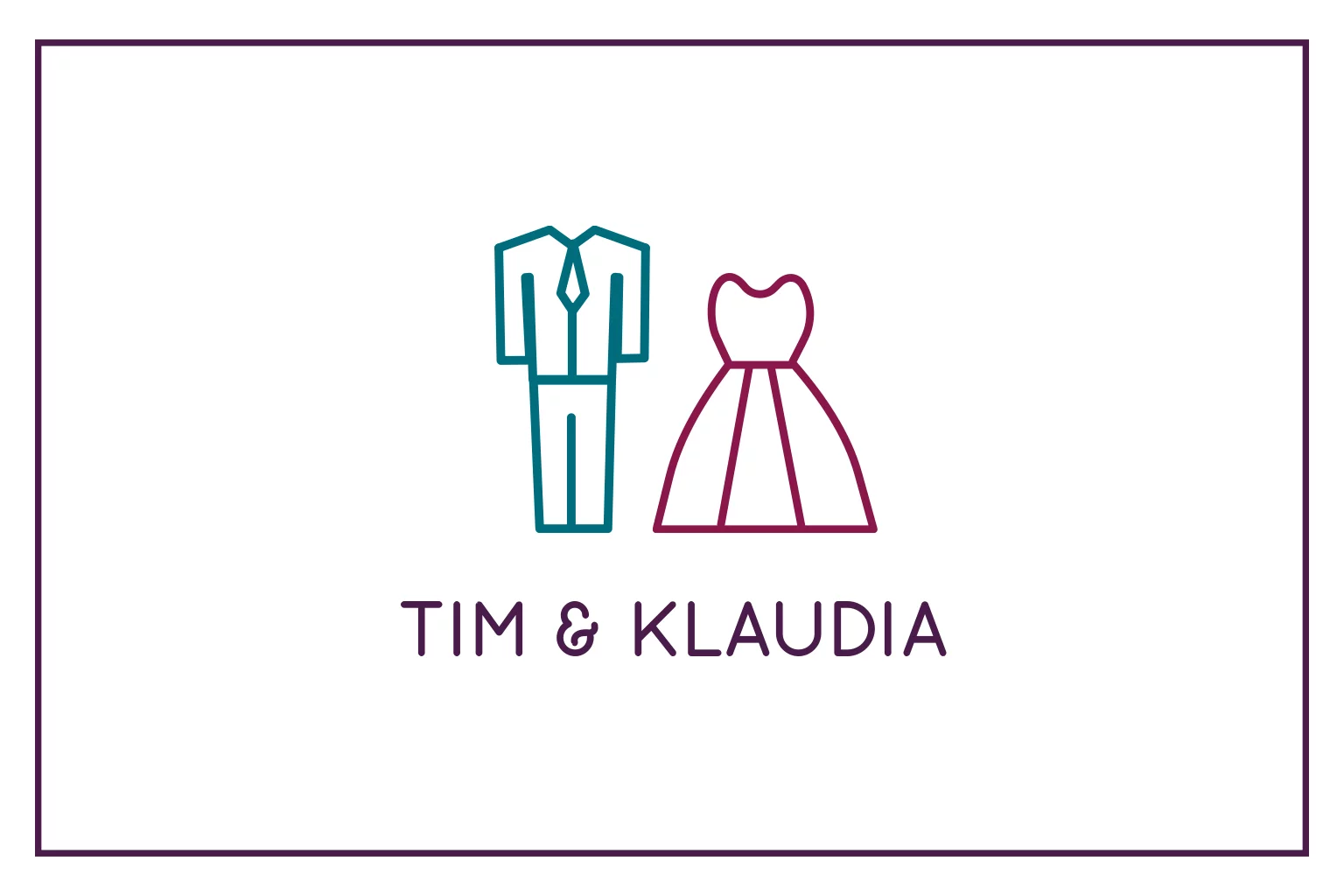 Einladung zur Hochzeit als weiße Klappkarte mit Rahmen und Platz für Eure Fotos. Die Karte wird von Brautpaar Icons geziert.