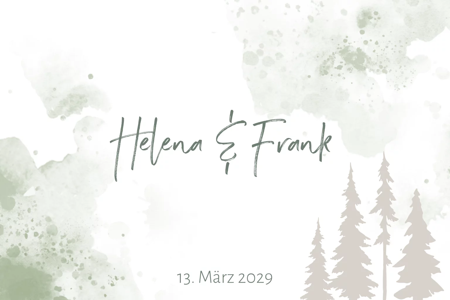 Hochzeitseinladung mit Aquarell in grün und Tannenbäumen in beige
