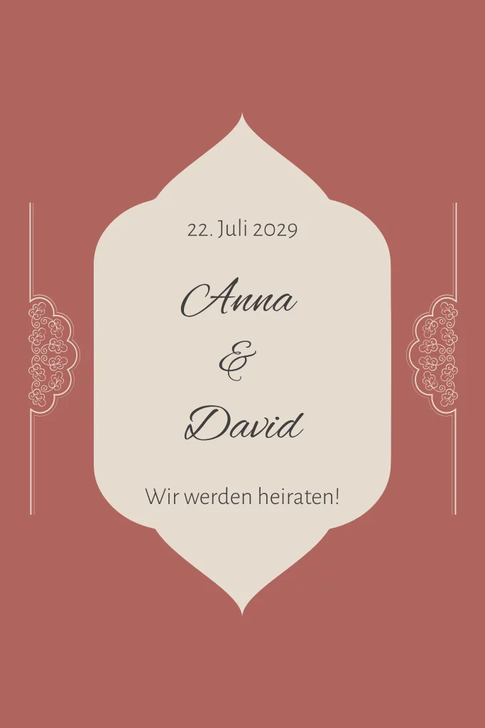 Orientalische Einladungskarte zur Hochzeit in rostrot mit Ornament in beige.