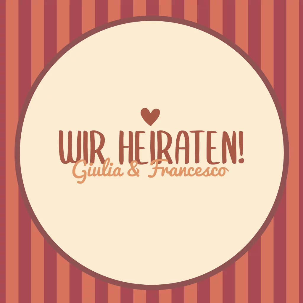 Lustige Hochzeitseinladung als Pizzakarton mit Streifen und Herz
