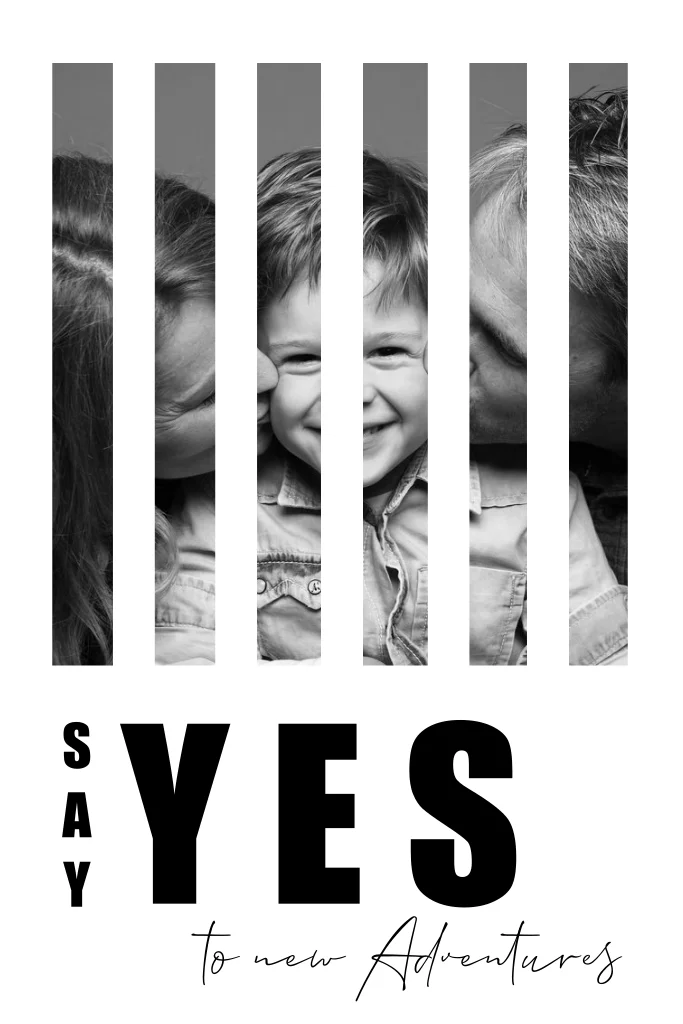 Schlichte Einladungskarte zur Hochzeit mit Foto und Streifen Design. Die Einladung in schwarz weiß zeigt Euren Freunden, dass Ihr als Familie den nächsten Schritt geht und zu Eurer Trauung einladet.
